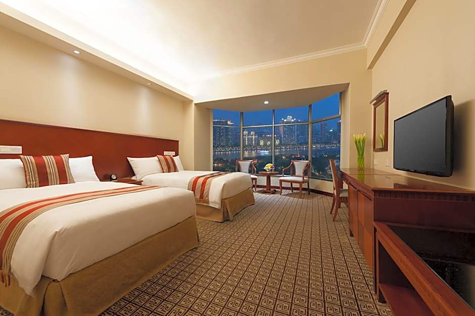 +1 (888) 389-8504Welcome to the Ramada by Wyndham Pearl Guangzhou, your ideal tranquil escape just 4 миль from the bustling heart of Guangzhou! If you’re looking for a cozy yet chic stay at an unbeatable price starting from only $74, this 4-star hotel is sure to tick all the boxes. Located conveniently on No 9 Ming Yue Yi Rd Dongshan, it offers a free shuttle bus to the Canton Fair - perfect for those attending the event and wanting to skip the hassle of transportation.